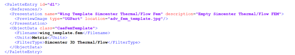 For CAE applications, template files contain the settings and the FE modeling definitions that you need to define an analysis. The .pax file is an XML file that defines the FEM and Simulation file templates that the software loads automatically when you create a new part file with a template. You will customize the .pax file by editing the XML content with a text editor to add entries that point to your own custom template file.