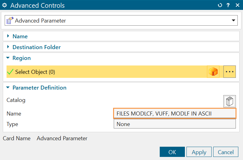 - Specifying a FILES MODLCF, VUFF, MODLF IN ASCII advanced