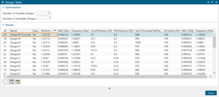 - Update the expressions and parameters associated to the part, FEM, assembly FEM and Simulation files with the current values of the design variables, which correspond to those of the selected design using the Update command.