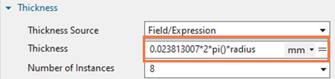- Thickness at the centerline is equal to the diameter multiplied by the number of instances.