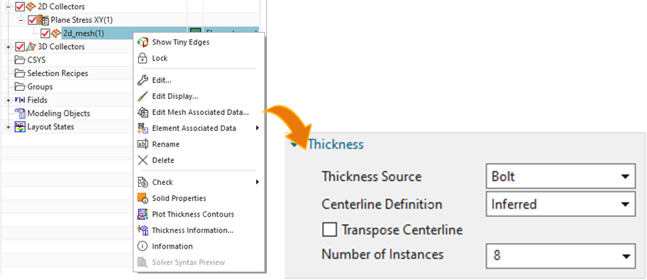 - 3D and 2D bolt total masses of the 3D and 2D meshes are equal using the Solid Properties.