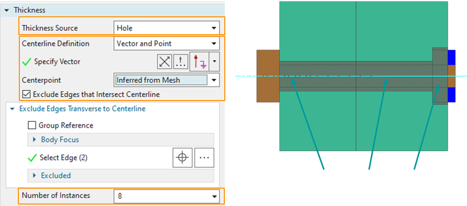 - In the Edit Mesh Associated Data dialog box, specify the number of holes and set Thickness Source to Hole.