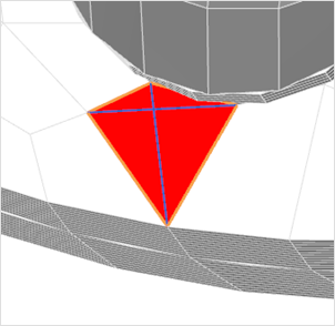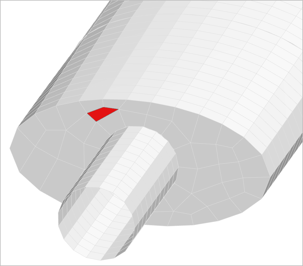 In the graphics window, the failed elements are displayed in red, and valid elements in gray.