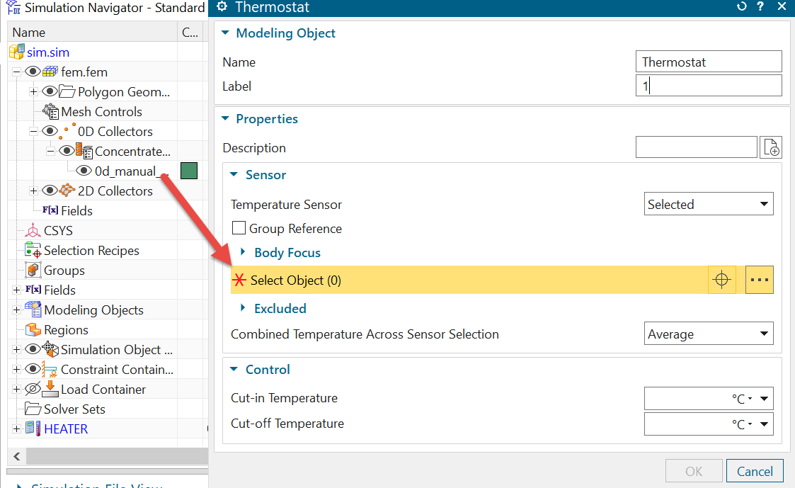 - Use the 0D element as a sensor for the thermostat.