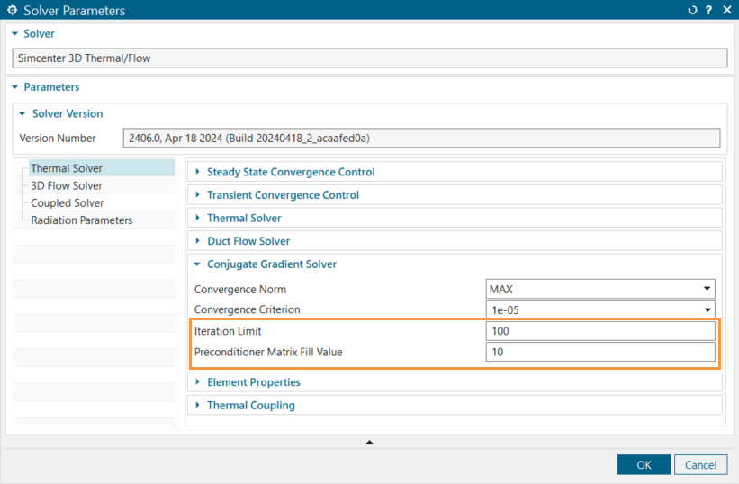 - Add GPARAM 12 731 -1E36 Card 9 to the solution, especially when there is high variation in conductance values due to significant differences in material properties or when some conductances are considerably larger than others. Matrix diagonal rescaling helps with the convergence. For models with PCB stacks, this parameter is particularly effective in aiding convergence.