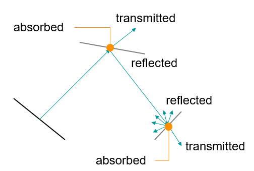 that are reflected, transmitted, and absorbed are calculated. The tracking