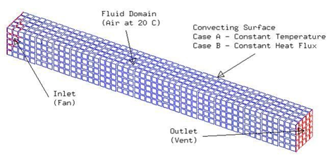 - Flow Surface: Boundary Flow Surface on the four duct surfaces using the No Slip Wall option with smooth wall friction and convection properties set to Automatic