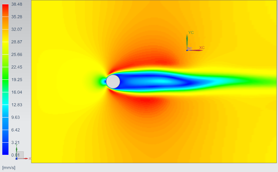 The incompressible flow over a cylinder is defined by solving the Navier-Stokes equations: