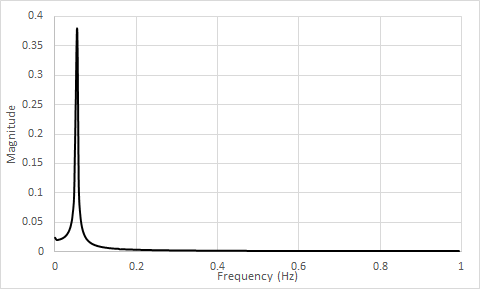 The following figure shows the single-sided amplitude spectrum of Lift (t).